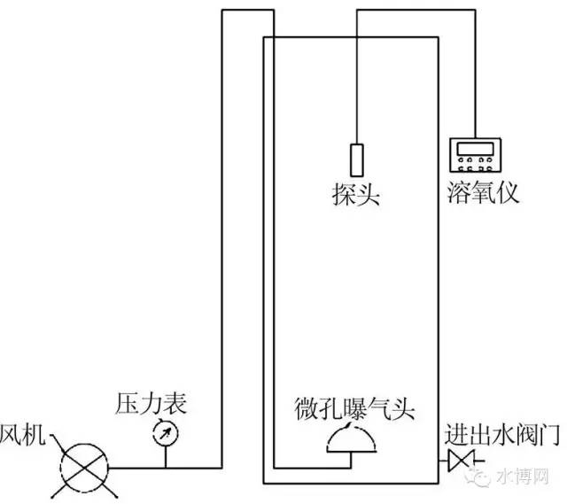 試驗(yàn)裝置材質(zhì)為有機(jī)玻璃,主體為1個(gè)D0.4m×2m的圓柱形曝氣池,溶解氧探頭位于水面下0.5m處(如圖1所示)。