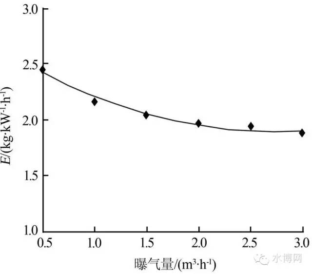 理論動(dòng)力效率(E)隨曝氣量的變化情況見圖3。