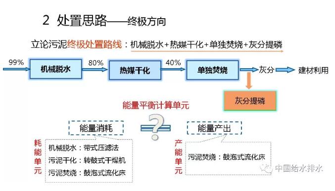 因此,最后只有去“燒”!但是,“燒”必須要經過機械脫水,含水率99%的污泥首先降至80%;然后,再熱干化到40%以下。到40%就可以自持燃燒了。燒,但污泥焚燒千萬不能放在水泥窯中同水泥一塊燒。這樣不對。會把磷就全部固定在水泥里,磷再也不能回用了!所以,要單獨燒。最多可以跟有機垃圾一塊燒。燒完以后,大量的磷都在灰分里面,需要提取。當然了,大家知道,脫水、熱干化、單獨焚燒都是要輸入能量的,當焚燒之后也會產生能量?,F在我們有一個問題,就是輸入能量和產生的能量能否達到平衡?我們需要計算一下,如果能打個平手那就是很了不起的事了。