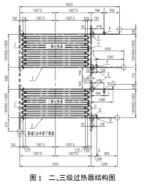 二級(jí)過(guò)熱器和三級(jí)過(guò)熱器管子的材料為12Cr1MoVG,一級(jí)過(guò)熱器管子的材料為20G/GB5310,一、二級(jí)過(guò)熱器橫向節(jié)距為120mm,三級(jí)過(guò)熱器橫向節(jié)距為145mm。過(guò)熱器管子和集箱均支撐在水冷壁上,與水冷壁一起向上膨脹。
