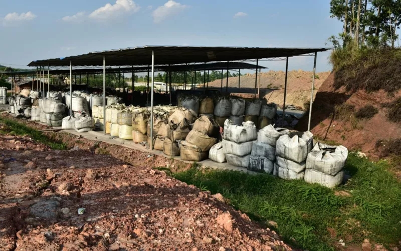 倉庫內(nèi)堆放大量袋裝鋁灰