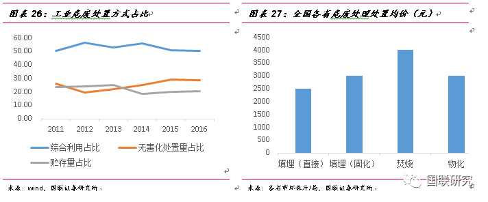 綜合兩種測(cè)算方法,我們認(rèn)為2016年我國(guó)危廢實(shí)際產(chǎn)生量將在1.07-1.24億噸左右,低位值1.07億噸,遠(yuǎn)高于生態(tài)環(huán)境部統(tǒng)計(jì)值。
