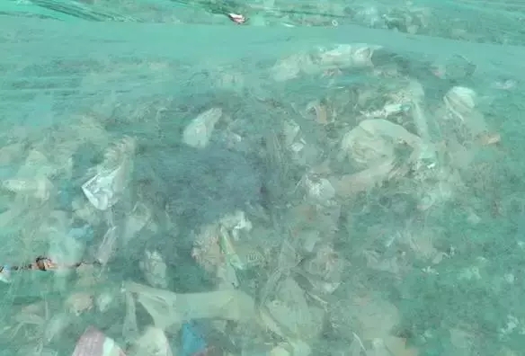 圖5:三善堂臨時(shí)垃圾堆場綠化膜下的垃圾清晰可見。