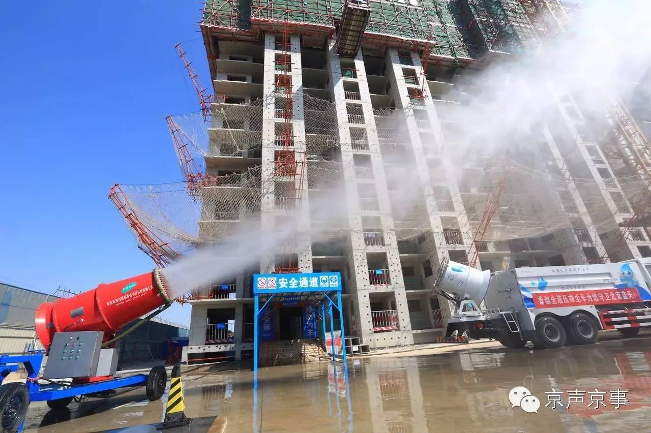 2016年,北京朝陽區(qū)用抑塵射霧器治理工地?fù)P塵,這個(gè)多功能抑塵射霧器是“藍(lán)天計(jì)劃”引入的新技術(shù)之一。攝影人民日?qǐng)?bào)記者王昊男