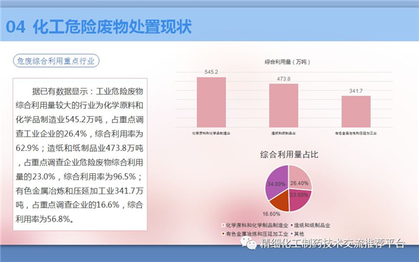 目前,我國化工行業(yè)產(chǎn)生的危險(xiǎn)廢物量大、種類多、成分復(fù)雜。在國家對(duì)環(huán)境保護(hù)的要求越來越高,對(duì)危險(xiǎn)廢物管理越來越嚴(yán)的趨勢(shì)下,化工行業(yè)面臨大量化工危廢,如廢酸、廢堿、廢鹽及其它廢渣的處置壓力,實(shí)現(xiàn)化工危險(xiǎn)廢物的減量化、資源化和無害化是化工行業(yè)亟需解決的重要難題。