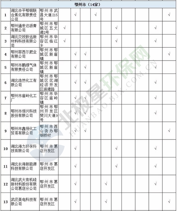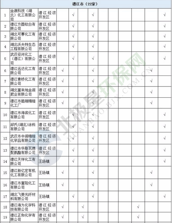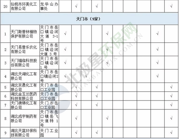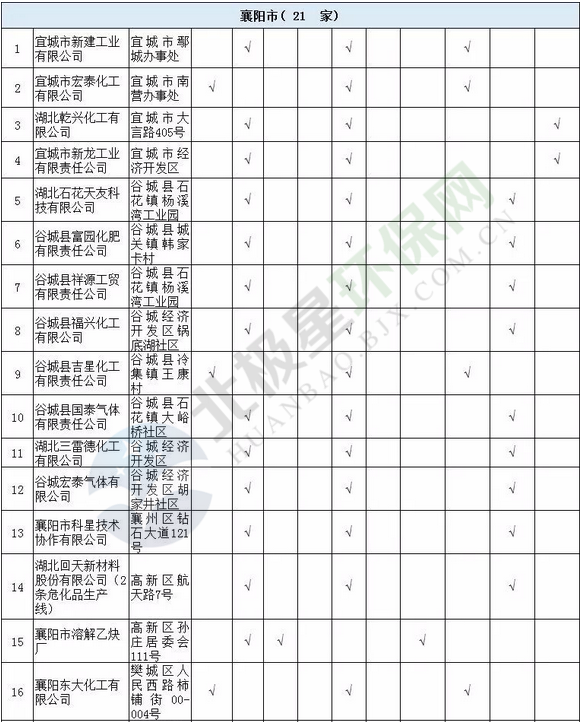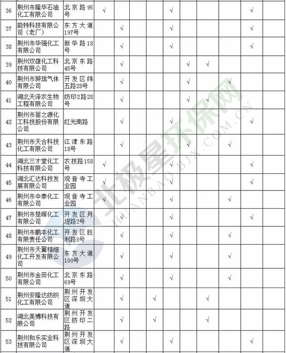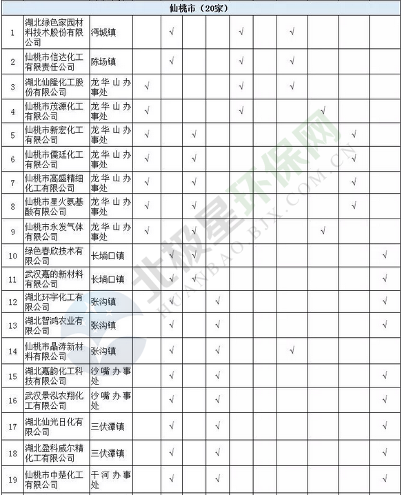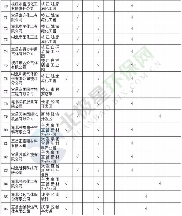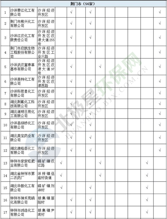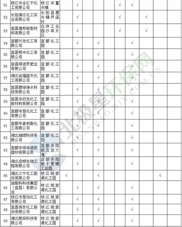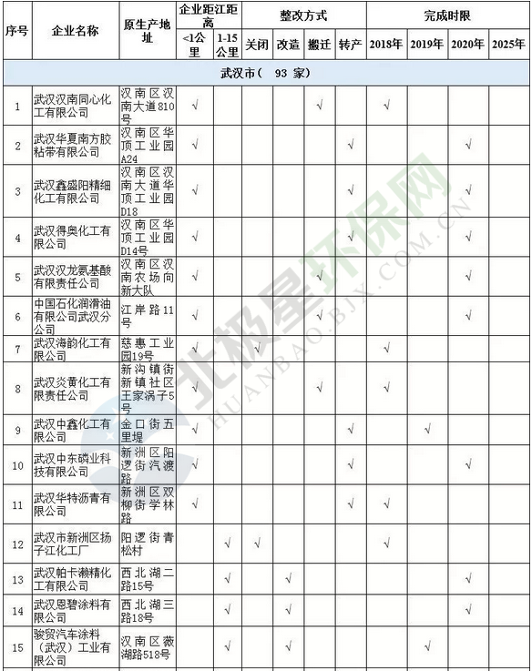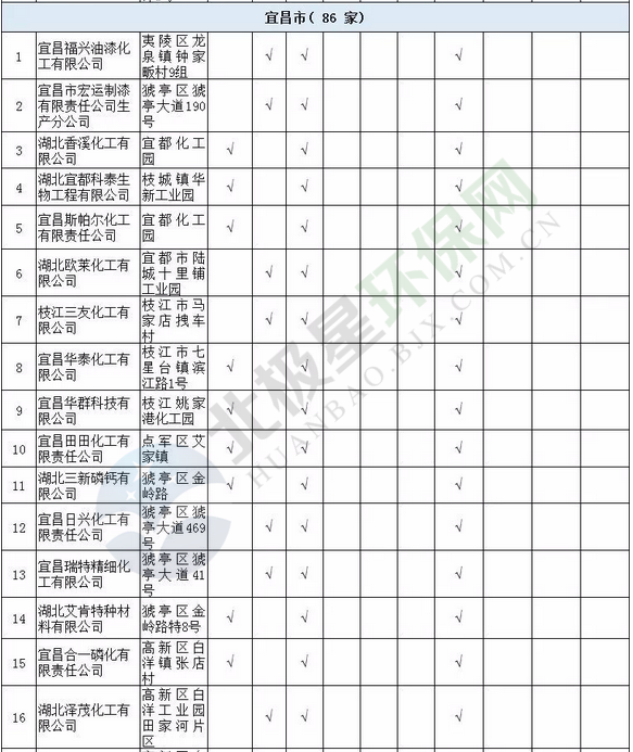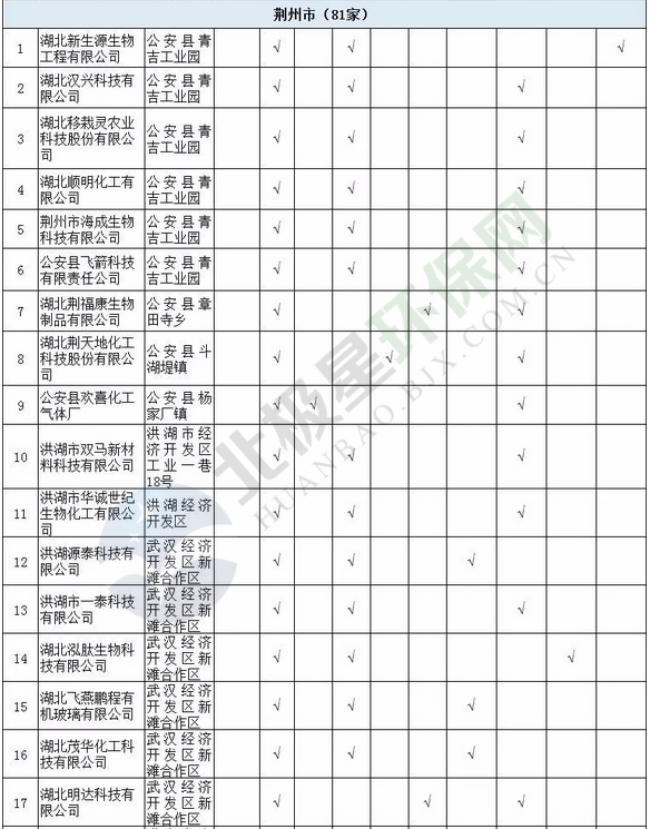 日前湖北省經(jīng)信委發(fā)布了關于《湖北省沿江化工企業(yè)關改搬轉(zhuǎn)任務清單(征求意見稿)》公示,其中涉及湖北省沿江化工企業(yè)總計497家。公示期為2018年9月30日至10月11日。其中,武漢市( 93家 )、襄陽市( 21家 )、宜昌市( 86 家)、十堰市( 21家)、荊州市(81家)、黃石市(16家)、荊門市(56家)、鄂州市(14家)、孝感市(8家)、黃岡市(38家)、咸寧市(8家)、恩施州(4家)、仙桃市(20家)、天門市(9家)、潛江市(22家)。