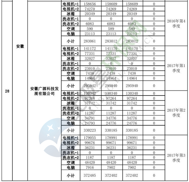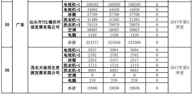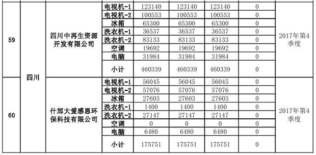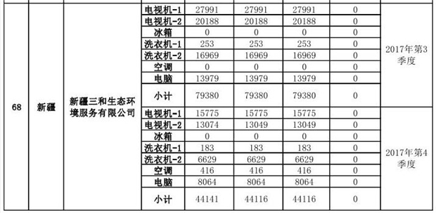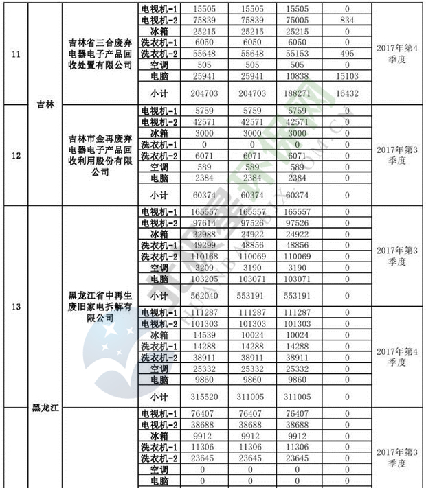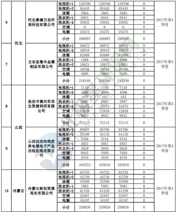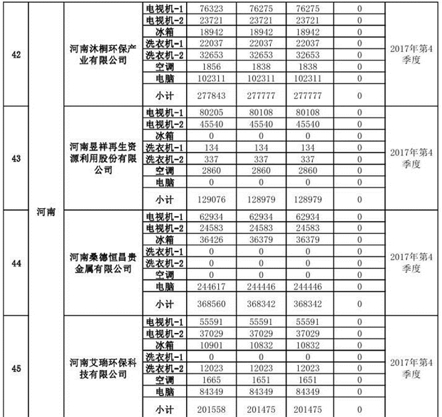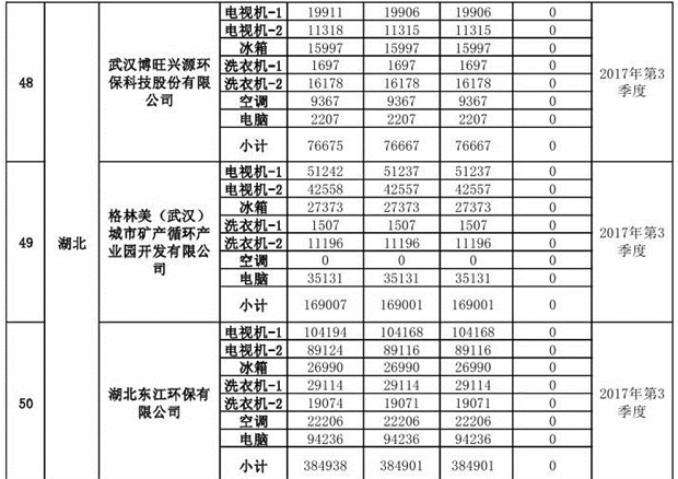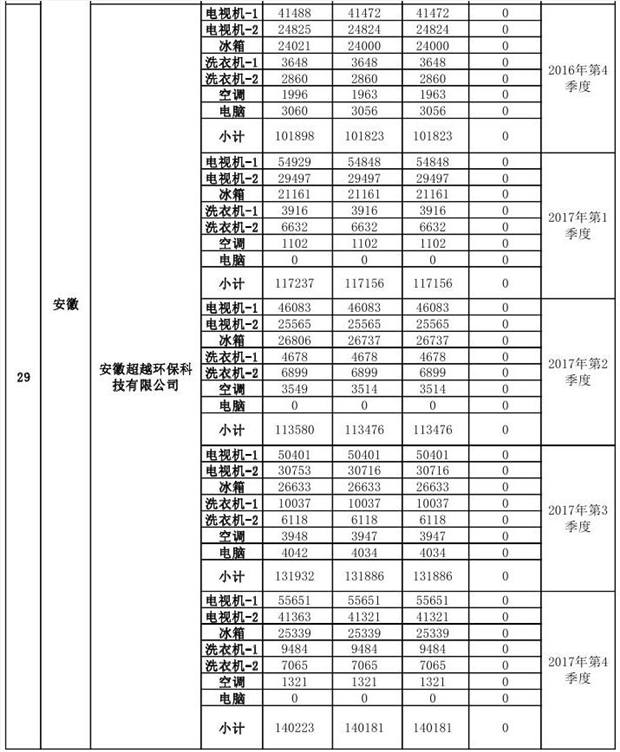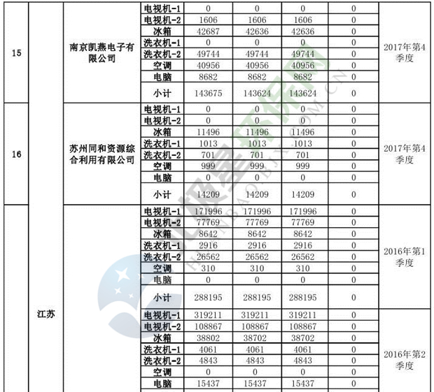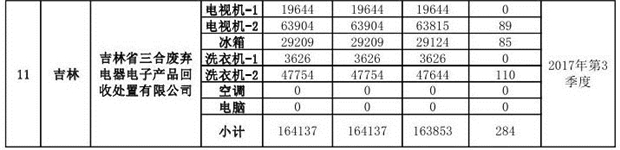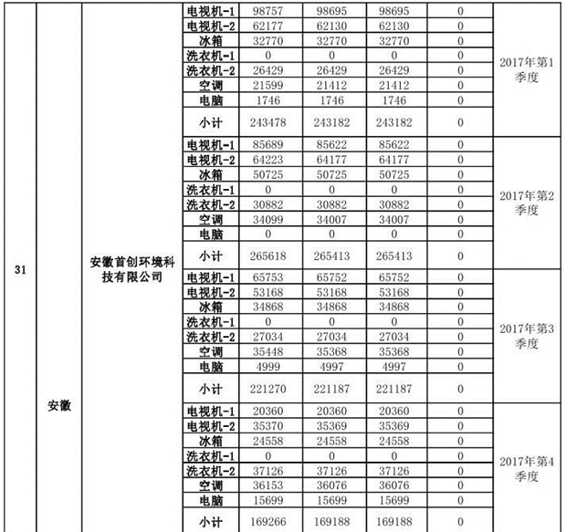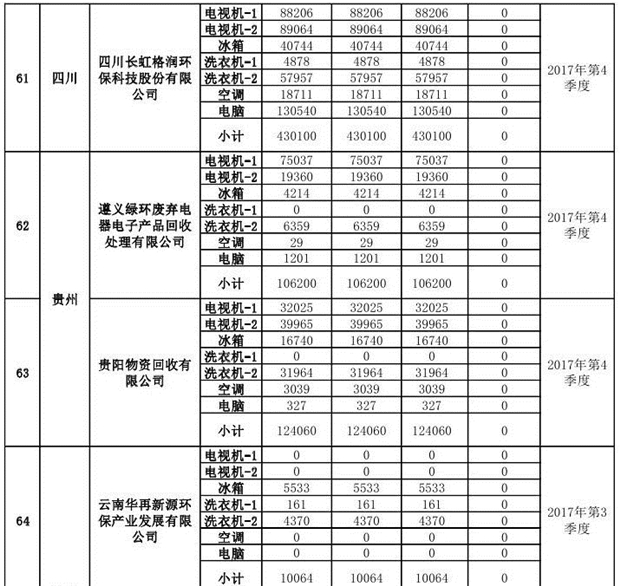 上述69家通過技術(shù)復(fù)核的企業(yè)申請廢電器規(guī)范拆解處理數(shù)量為26342953 臺(套);經(jīng)省級環(huán)保部門審核認(rèn)定廢電器規(guī)范拆解處理數(shù)量為26306765臺(套),扣減36188臺(套);部固管中心通過技術(shù)復(fù)核擬確認(rèn)廢電器規(guī)范拆解處理數(shù)量為26242476臺(套),扣減64289臺(套)(詳見附件)。