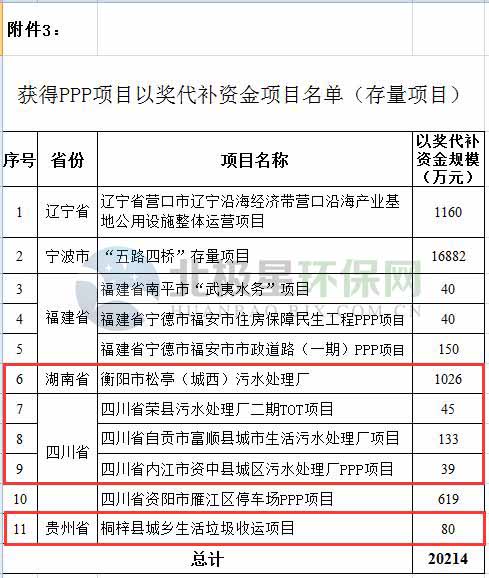 3.獲得PPP項目以獎代補資金項目名單(存量項目)
