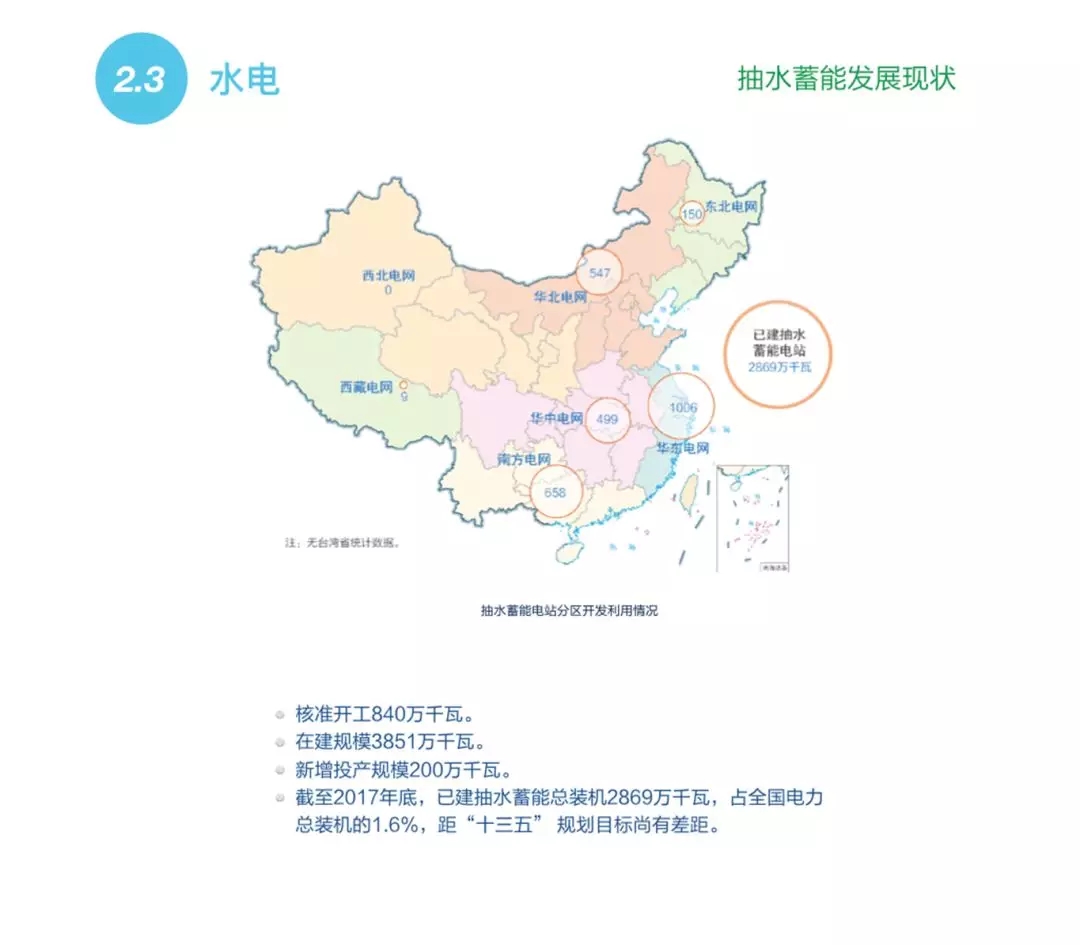 到2017年底,中國的常規(guī)水電總裝機(jī)容量達(dá)到3.6億千瓦,其中在建規(guī)模5100萬千瓦。抽水蓄能在建規(guī)模為3851萬千瓦,已建總裝機(jī)容量為2869萬千瓦。