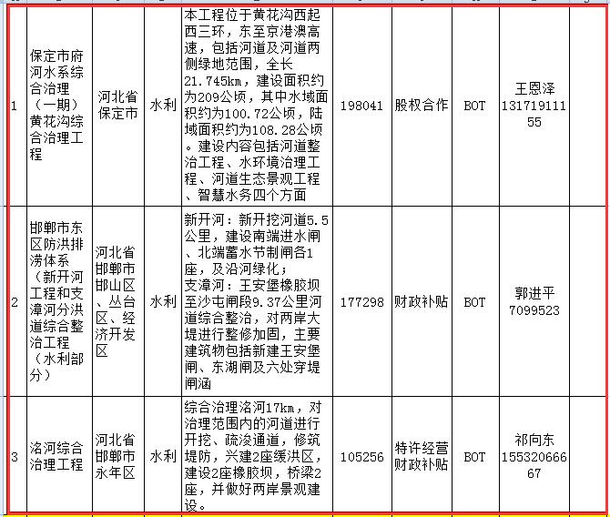 日前,河北省發(fā)布了2018年傳統(tǒng)基礎(chǔ)設(shè)施領(lǐng)域PPP項(xiàng)目,鼓勵(lì)和引導(dǎo)民間資本進(jìn)入能源、交通運(yùn)輸、水利、環(huán)境保護(hù)、農(nóng)業(yè)、林業(yè)、重大市政工程等傳統(tǒng)基礎(chǔ)設(shè)施領(lǐng)域,共18個(gè)項(xiàng)目,涉及垃圾焚燒發(fā)電、流域綜合治理等7個(gè)環(huán)保項(xiàng)目,詳情如下: