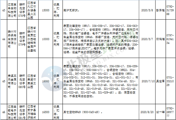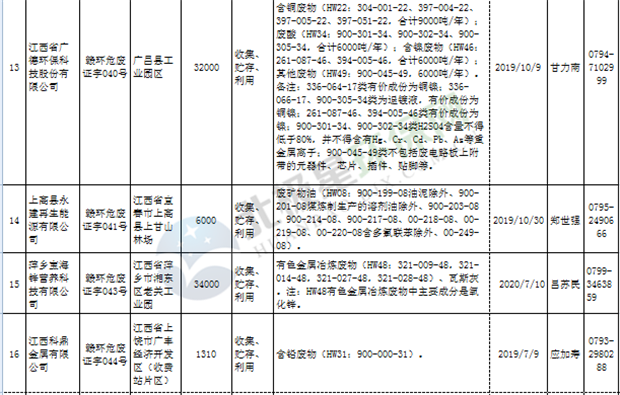 江西省臨時危險廢物經(jīng)營許可證持證單位名單(省廳審批) 10月09日更新