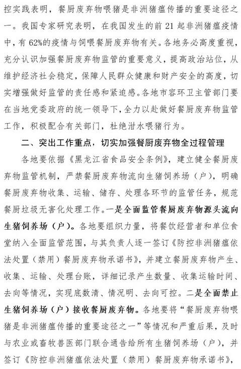 進(jìn)一步做好非洲豬瘟防控工作:全面禁止餐廚剩余物飼喂生豬