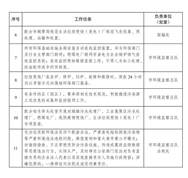 危險(xiǎn)廢物焚燒廠嚴(yán)格落實(shí)危險(xiǎn)廢物申報(bào)登記、貯存管理、轉(zhuǎn)移聯(lián)單、應(yīng)急預(yù)案等許可條件要求,設(shè)施工況運(yùn)行滿足要求,污染處理設(shè)施運(yùn)行正常,廢水、廢氣排放達(dá)到《危險(xiǎn)廢物焚燒污染控制標(biāo)準(zhǔn)》,次生危險(xiǎn)廢物實(shí)現(xiàn)安全處置。(市環(huán)保局牽頭,相關(guān)區(qū)、園區(qū)負(fù)責(zé)落實(shí))