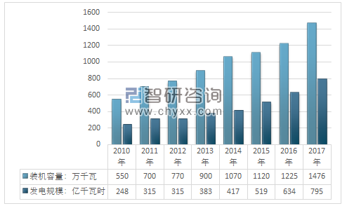 2010-2017年我國生物質(zhì)發(fā)電裝機容量及發(fā)電規(guī)模情況