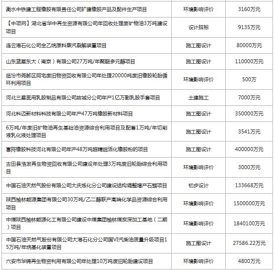 2018下及2019上半年全國再生資源新建項目匯總