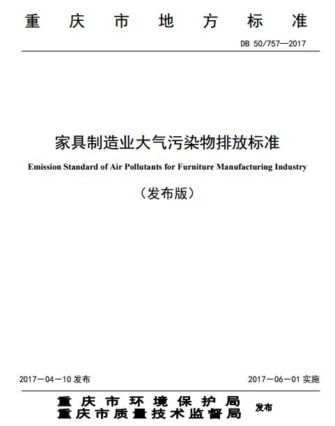重慶印發(fā)《家具制造業(yè)大氣污染物排放標(biāo)準(zhǔn)》。標(biāo)準(zhǔn)對家具制造業(yè)大氣污染排放特別是VOCs排放做了詳細(xì)具體的規(guī)定。全文如下: