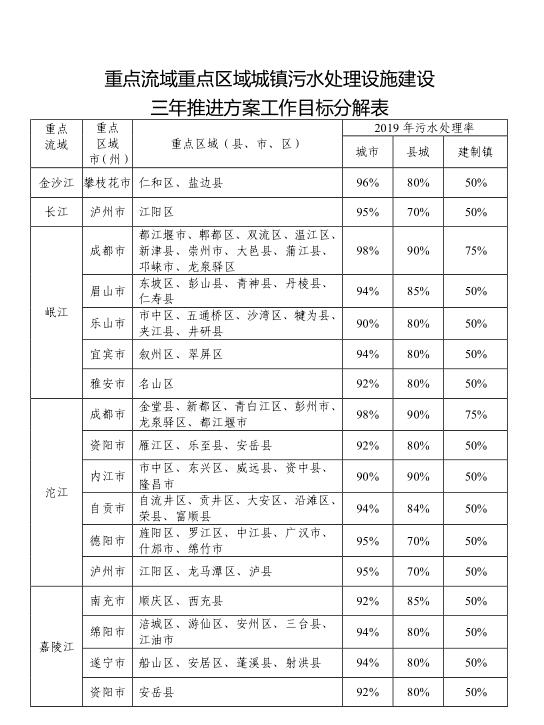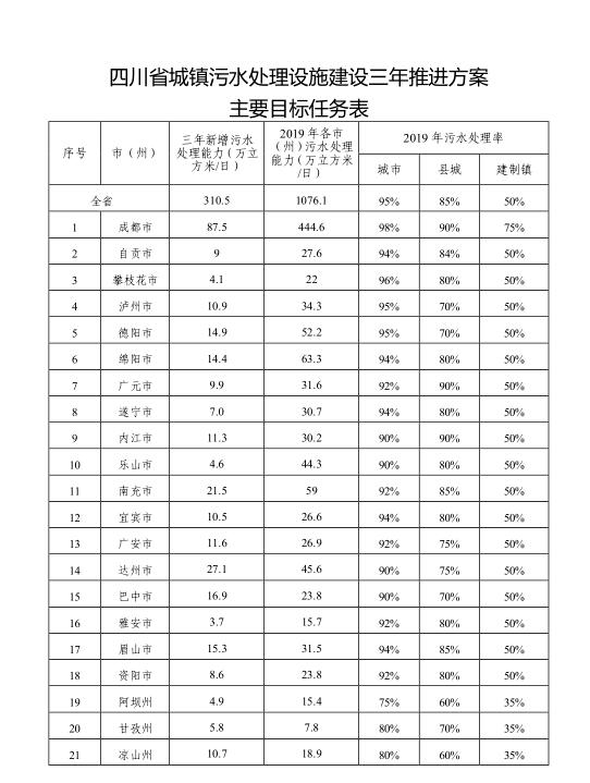 附件:1.四川省城鎮(zhèn)污水處理設施建設三年推進方案主要建設任務表、目標任務表、重點流域重點區(qū)域目標分解表及實施項目計劃表