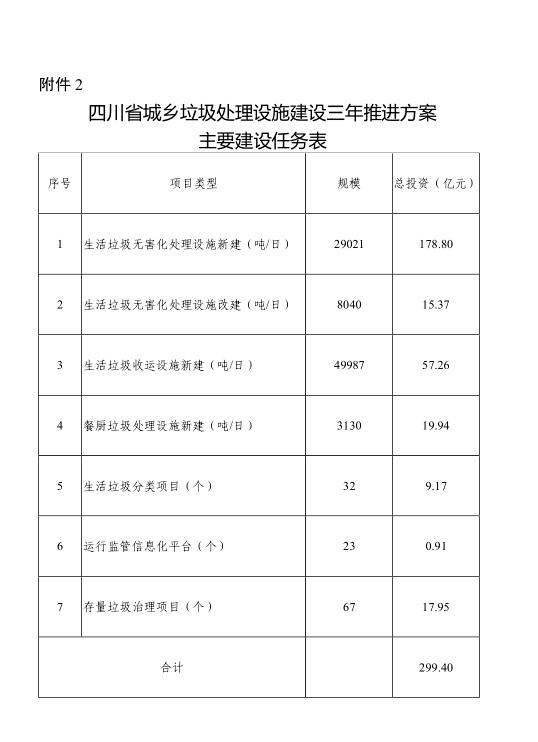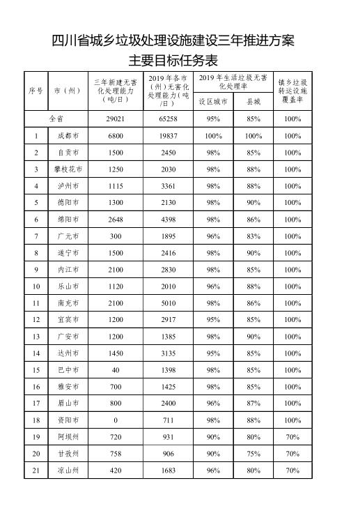 2.四川省城鄉(xiāng)垃圾處理設施建設三年推進方案主要建設任務表、目標任務表、重點流域重點區(qū)域目標分解表及實施項目計劃表