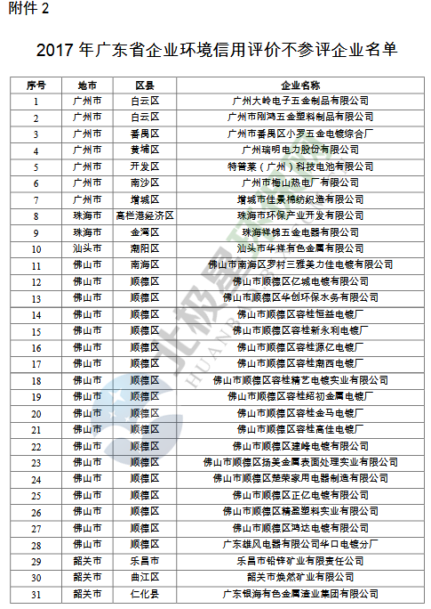 2.2017年廣東省企業(yè)環(huán)境信用評(píng)價(jià)不參評(píng)企業(yè)名單