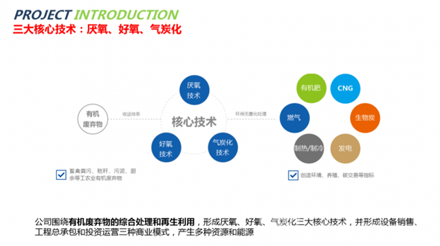 通過5年的潛心、實干積累,使匯君環(huán)能擁有了自己的一套核心技術模式,即厭氧與好氧相結合的工藝模式,保證每一個項目達到效果最優(yōu)化。厭氧路線,利用公司厭氧專利核心設備,將有機廢棄物轉化成沼氣,用來發(fā)電、脫碳制壓縮生物天然氣和供熱;好氧路線,利用智能化高溫好氧設備,直接產(chǎn)生符合國家標準的525有機肥,根據(jù)肥料客戶需求,還會再添加復配一些菌種,生產(chǎn)菌機肥。兩條核心技術路線綜合運用發(fā)展的基本策略,使公司在行業(yè)內(nèi)奠定了厚實的基礎,區(qū)域整體規(guī)劃綜合處治理,實現(xiàn)了有機廢棄物資源化和肥料化相結合的匯君模式。