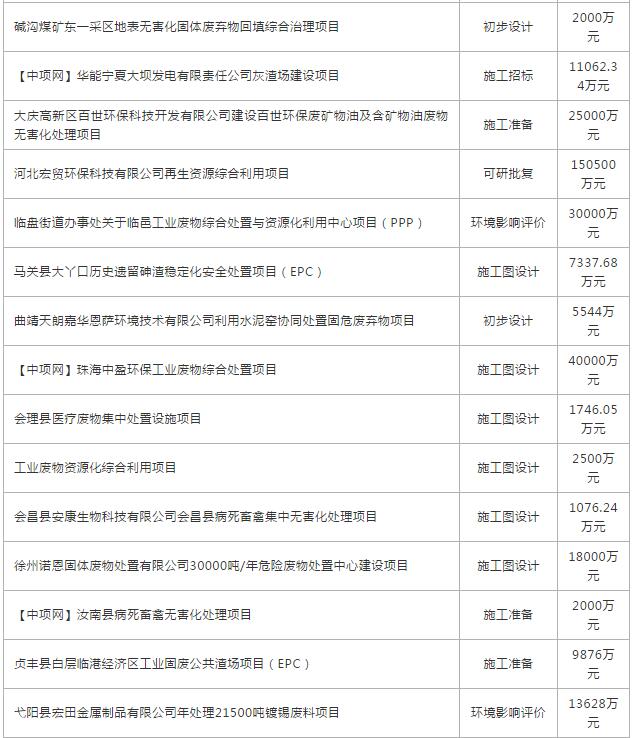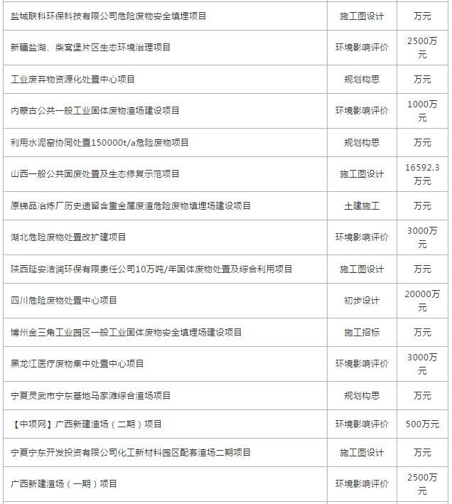 11月份全國(guó)擬在建固體廢棄物項(xiàng)目