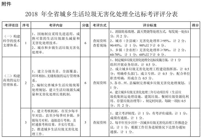 附件:2018 年全省城鄉(xiāng)生活垃圾無害化處理全達(dá)標(biāo)考評評分表