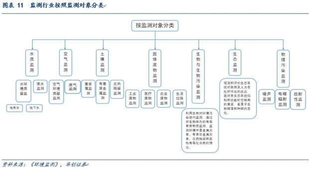 環(huán)境監(jiān)測行業(yè)按照監(jiān)測對象分類,可分為水質(zhì)監(jiān)測、空氣監(jiān)測、土壤監(jiān)測、固體廢物監(jiān)測、生物監(jiān)測與生物污染監(jiān)測、生態(tài)監(jiān)測和物理污染監(jiān)測。而每個子板塊可以進(jìn)一步劃分為環(huán)境質(zhì)量監(jiān)測和污染源監(jiān)測,以空氣監(jiān)測為例,可以劃分為空氣環(huán)境質(zhì)量監(jiān)測和廢氣監(jiān)測,前者主要監(jiān)測環(huán)境中污染物的分布和濃度,以確定環(huán)境質(zhì)量狀況;后者的主要目的是控制有害物質(zhì)的排放量。對于不同的監(jiān)測領(lǐng)域和監(jiān)測目的也有相對應(yīng)的不同監(jiān)測設(shè)備,大氣監(jiān)測設(shè)備可以分為CO、SO2、NOX、O3、PM10、PM2.5、顆粒物監(jiān)測設(shè)備等,大型監(jiān)測點(diǎn)如國控點(diǎn)、省控點(diǎn)包含以上多個模塊,而網(wǎng)格化布點(diǎn)的小型化監(jiān)測設(shè)備主要用于監(jiān)測以PM2.5為主的單項指標(biāo)。