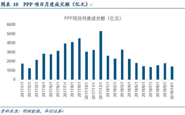 但從明樹數(shù)據(jù)公布的PPP項目成交情況來看,今年以來PPP成交額顯著下滑,由2017年12月份的5292億下滑至2018年10月的1423.1億元,降幅高達(dá)73.11%。