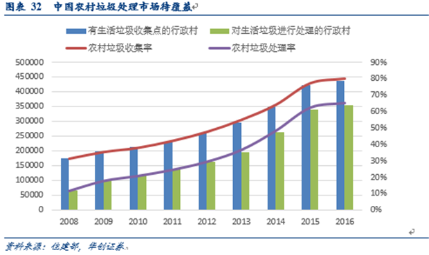 2016年,國務(wù)院印發(fā)的《“十三五”生態(tài)環(huán)境保護(hù)規(guī)劃》提出的目標(biāo):實現(xiàn)90%以上村莊的生活垃圾得到有效治理,推進(jìn)垃圾處理設(shè)施和服務(wù)向農(nóng)村延伸,新增完成對13萬個建制村完成環(huán)境綜合整治。