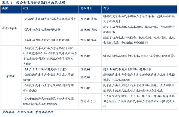 新能源汽車政策是近年新能源汽車發(fā)展的重要風(fēng)向標(biāo),一方面,十三五規(guī)劃從頂層對新能源汽車的發(fā)展指出方向,另一方面,針對產(chǎn)品準(zhǔn)入、電池供應(yīng)、充電基礎(chǔ)設(shè)施、能耗管理和補(bǔ)貼等做出了明確要求。而隨著動力電池即將步入報廢期,2017年以來針對動力電池技術(shù)規(guī)范、管理等方面推出了一系列政策,尤其是2018年2月以來對動力電池的規(guī)格尺寸、編碼、余能監(jiān)測等技術(shù)規(guī)范的統(tǒng)一將進(jìn)一步推動梯次利用等回收手段的高效應(yīng)用。