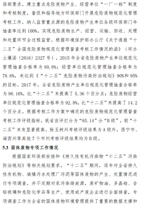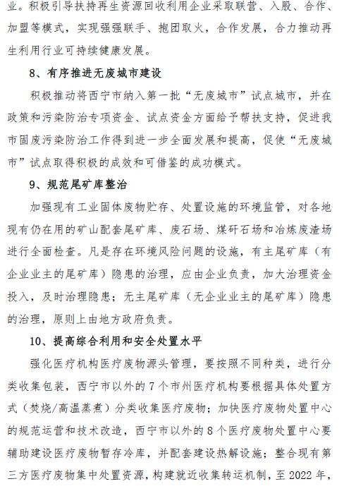 日前,青海印發(fā)《青海省固體廢物污染防治規(guī)劃(2018年-2022年)(征求意見(jiàn)稿)》。