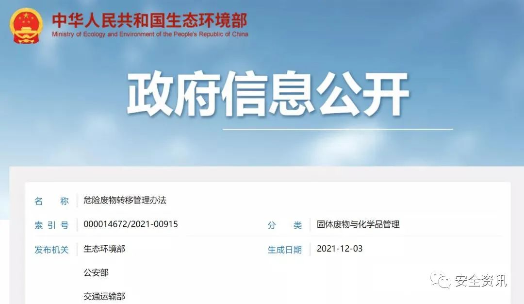 文章導(dǎo)讀《危險(xiǎn)廢物轉(zhuǎn)移管理辦法》自2022年1月1日起施行,同時(shí)廢止 《危險(xiǎn)廢物轉(zhuǎn)移聯(lián)單管理辦法》(原國(guó)家環(huán)境保護(hù)總局令第5號(hào))。危險(xiǎn)廢物轉(zhuǎn)移管理辦法 《危險(xiǎn)廢物轉(zhuǎn)移管理辦法》已于2021年9月18日由生態(tài)環(huán)境部部務(wù)會(huì)議審議通過(guò),并經(jīng)公安部和交通運(yùn)輸部同意,現(xiàn)予公布,自2022年1月1日起施行。 生...