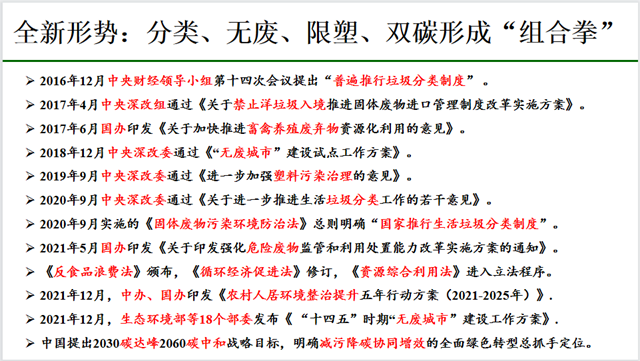 日前,環(huán)境商會(huì)組織召開(kāi)環(huán)衛(wèi)產(chǎn)業(yè)研討會(huì),特邀清華大學(xué)劉建國(guó)教授出席。會(huì)上,劉建國(guó)詳細(xì)分析了當(dāng)前固廢行業(yè)形勢(shì)。 劉建國(guó)表示,目前固廢行業(yè)整體面臨全新形勢(shì)。一是分類(lèi)、無(wú)廢、限塑、雙碳將形成“組合拳”。 劉建國(guó)指出,從2000年提出垃圾分類(lèi)到現(xiàn)在,垃圾分類(lèi)和20多年前有很大不同:過(guò)去...