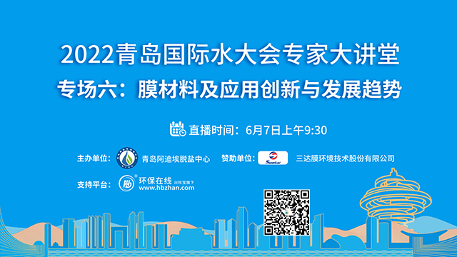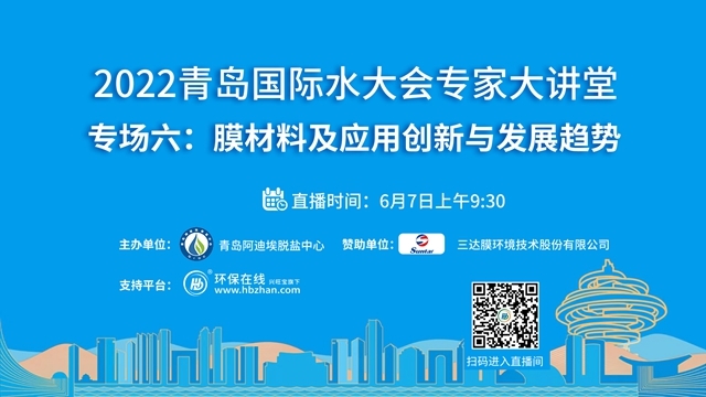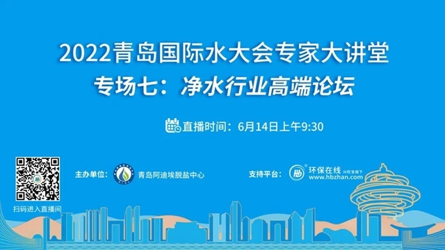 “2022青島國際水大會專家系列大講堂”接力第七場——凈水行業(yè)高端論壇將于6月14日上午登陸環(huán)保在線!緊跟海水淡化、工業(yè)節(jié)水與污水資源化、城鎮(zhèn)水務(wù)、水資源可持續(xù)、水環(huán)境治理、膜材料等議題的熱度,凈水行業(yè)的當(dāng)下與未來,誠邀業(yè)界同仁共探共論。(點(diǎn)擊圖片,即...