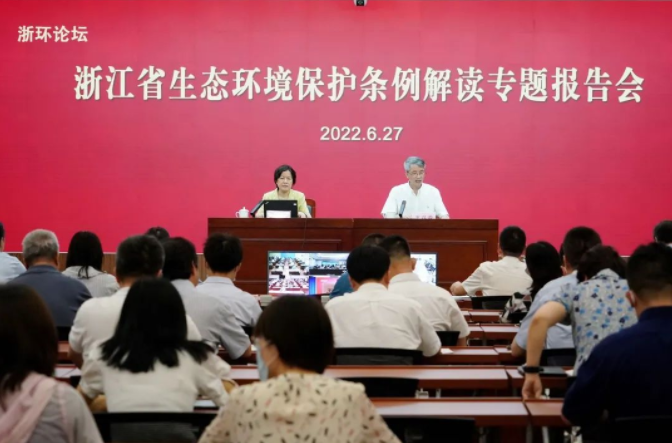 為切實(shí)做好《浙江省生態(tài)環(huán)境保護(hù)條例》(以下簡稱《條例》)的學(xué)習(xí)宣傳貫徹工作,2022年6月27日下午,省生態(tài)環(huán)境廳舉辦浙環(huán)論壇?浙江省生態(tài)環(huán)境保護(hù)條例解讀專題報告會,邀請省人大法制委員會副主任委員、一級巡視員尹林作《守護(hù)綠水青山 建設(shè)美麗浙江——浙江省生態(tài)環(huán)境保護(hù)條例介紹》專...