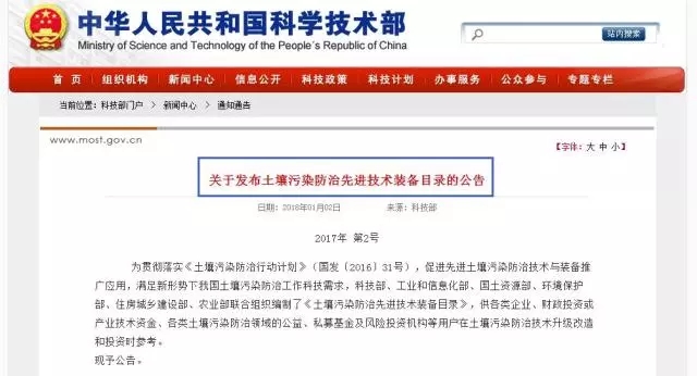1月2日,科技部發(fā)布了土壤污染防治先進技術(shù)裝備目錄的公告。由科技部、工業(yè)和信息化部、國土資源部、環(huán)境保護部、住房城鄉(xiāng)建設(shè)部、農(nóng)業(yè)部聯(lián)合組織編制的《土壤污染防治先進技術(shù)裝備目錄》,旨在促進先進土壤污染防治技術(shù)與裝備推廣應(yīng)用,滿足新形勢下我國土壤污染防治工作科技需求。裝備目錄共有15種先進技術(shù)裝備,包括...