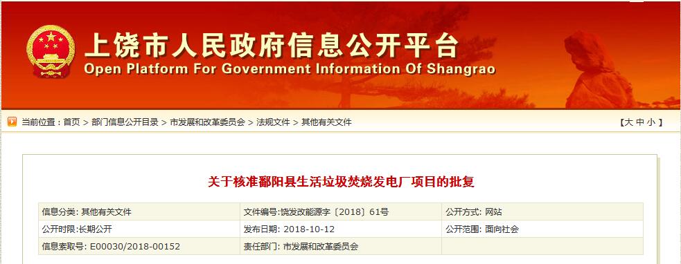 日前,江西上饒市政府公布了關于核準鄱陽縣生活廠項目的批復,項目單位為鄱陽縣綠色東方再生能源有限公司。項目建設地點位于上饒市鄱陽縣游城鄉(xiāng)北塘村,該項目建設規(guī)模為12MW,本項目建設配置1臺600t/d機械爐排爐、1臺12MW冷凝式汽輪發(fā)電機組。詳情如下:鄱陽縣發(fā)改委、鄱陽縣綠色東方再生能源有限公司:你...
