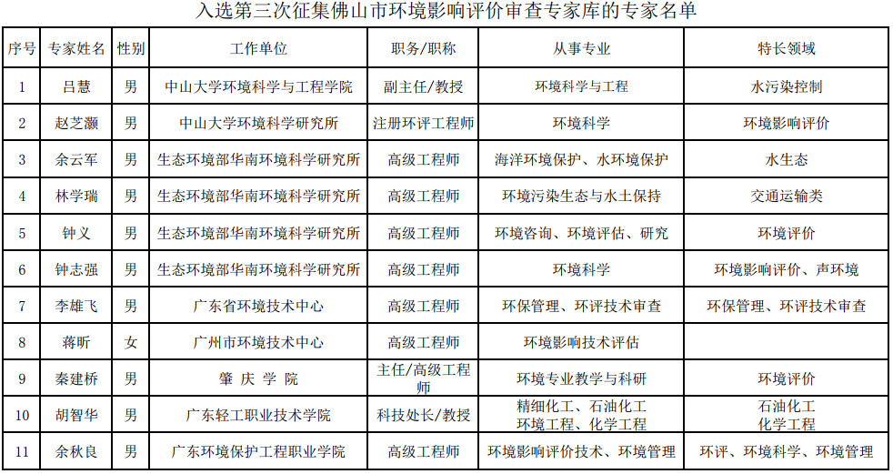 佛山生態(tài)環(huán)境局發(fā)布了關(guān)于第三次征集佛山市環(huán)境影響評(píng)價(jià)審查專(zhuān)家?guī)鞂?zhuān)家入選名單的公示,全文如下:為進(jìn)一步規(guī)范和完善我市環(huán)境影響評(píng)價(jià)文件的審查,發(fā)揮專(zhuān)家在建設(shè)項(xiàng)目環(huán)境影響評(píng)價(jià)和規(guī)劃環(huán)評(píng)文件審查中的技術(shù)把關(guān)作用,提高審查質(zhì)量和效率,我局?jǐn)M第三次征集佛山市環(huán)境影響評(píng)價(jià)審查專(zhuān)家?guī)鞂?zhuān)家,經(jīng)征集、遴選、審查,現(xiàn)將入...