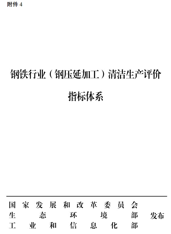 近日,國(guó)家發(fā)改委發(fā)布了鋼鐵行業(yè)(鋼延壓加工)清潔生產(chǎn)評(píng)價(jià)指標(biāo)體系,該政策對(duì)于鋼延壓加工工序中的大氣污染物排放量、水污染物排放量、固體廢物處置方面都進(jìn)行了說明,全文如下: