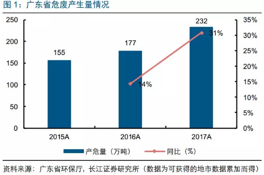 危廢產(chǎn)量:環(huán)保督察促危廢產(chǎn)量高增廣東省是我國(guó)產(chǎn)危大省,也是我國(guó)危廢正規(guī)化治理水平較高的省份。本篇報(bào)告主要對(duì)廣東危廢市場(chǎng)供需格局進(jìn)行詳細(xì)梳理。廣東省2017年危廢產(chǎn)量同比增31%至232萬(wàn)噸2017年廣東省危廢產(chǎn)量約232萬(wàn)噸,同比增31%,可獲得數(shù)據(jù)的14個(gè)地市中除了廣州略微下降,剩下地市產(chǎn)危量都出...