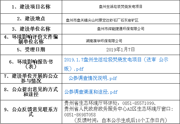 根據(jù)建設(shè)項(xiàng)目環(huán)境影響評(píng)價(jià)審批程序的有關(guān)規(guī)定,現(xiàn)將我廳于2019年1月7日受理的建設(shè)項(xiàng)目環(huán)境影響評(píng)價(jià)文件情況予以公示,公示期為2019年1月7日—2019年1月18日(10個(gè)工作日)。聯(lián)系電話:0851-86987058(貴州省人民政府政務(wù)服務(wù)中心A2區(qū)生態(tài)環(huán)境廳窗口)傳真:0851-86987058...