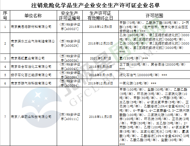 近日,江蘇省應(yīng)急管理廳發(fā)布2019年第3號(hào)公告,公布199家危險(xiǎn)化學(xué)品生產(chǎn)企業(yè)安全生產(chǎn)許可證被注銷(xiāo),詳情如下:截止2019年1月11日,全省共有南京美思德新材料有限公司等199家危險(xiǎn)化學(xué)品生產(chǎn)企業(yè)(見(jiàn)附件)的《危險(xiǎn)化學(xué)品生產(chǎn)企業(yè)安全生產(chǎn)許可證》不在有效期內(nèi),或者在有效期內(nèi)不再?gòu)氖挛kU(xiǎn)化學(xué)品生產(chǎn)活動(dòng)的...
