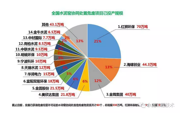 近年來,水泥窯協(xié)同處置危廢發(fā)展迅速,經(jīng)濟(jì)及社會(huì)環(huán)境效益均非常顯著。截至到2018年,我國已取得危廢經(jīng)營許可證的水泥窯協(xié)同處置危廢項(xiàng)目60個(gè),處置規(guī)模約368萬噸/年。其中,剔除8個(gè)資質(zhì)僅包含HW33的項(xiàng)目后,綜合類危廢處置項(xiàng)目合計(jì)52個(gè),處置規(guī)模約284萬噸/年。我國焚燒類危險(xiǎn)廢物處置合計(jì)產(chǎn)能634...