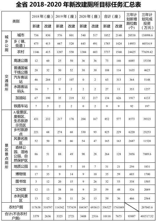 日前,四川省發(fā)布了關(guān)于進(jìn)一步推進(jìn)全省“廁所革命”工作的意見,并公布了《四川省推進(jìn)“廁所革命”三年行動(dòng)方案(2018—2020年)》,詳情如下:四川省人民政府辦公廳關(guān)于進(jìn)一步推進(jìn)全省“廁所革命”工作的意見川辦發(fā)〔2018〕89號(hào)各市(州)人民政府,省政府各部門、各直屬機(jī)構(gòu),有關(guān)單位:為深入貫徹落實(shí)黨中...