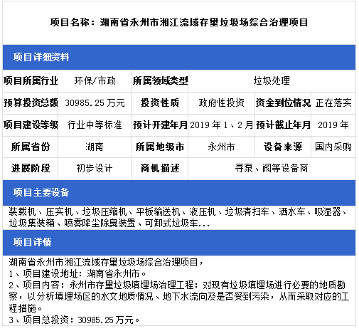 中項(xiàng)網(wǎng)獨(dú)家授權(quán)北極星固廢網(wǎng)發(fā)布最新垃圾處理項(xiàng)目(2018年12月18日更新),其中包括生活垃圾無害化處理設(shè)置建設(shè)項(xiàng)目、農(nóng)村生活垃圾治理項(xiàng)目、生活垃圾衛(wèi)生填埋場(chǎng)項(xiàng)目等。具體內(nèi)容如下: