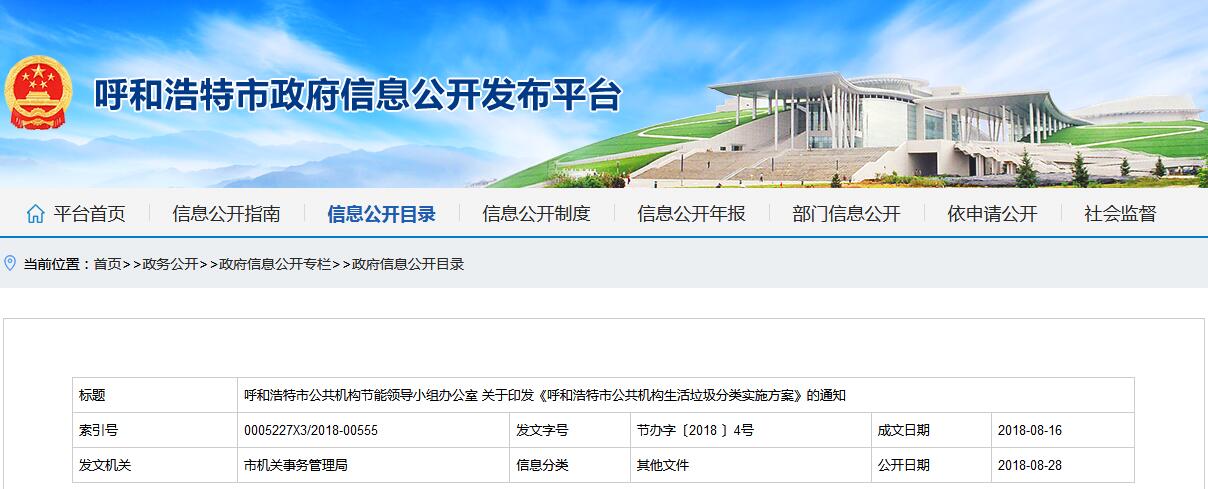呼和浩特市印發(fā)了《呼和浩特市公共機構(gòu)生活垃圾分類實施方案》,詳情如下:呼和浩特市公共機構(gòu)節(jié)能領(lǐng)導小組辦公室關(guān)于印發(fā)《呼和浩特市公共機構(gòu)生活垃圾分類實施方案》的通知市各部委辦局,各人民團體、事業(yè)單位:為深入貫徹習近平總書記關(guān)于普遍推行垃圾分類制度的重要講話精神,根據(jù)國家、自治區(qū)、市政府關(guān)于實施生活垃圾...