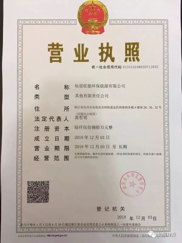 2018年12 月 3日,仙居縣市場監(jiān)督管理局頒發(fā)營業(yè)執(zhí)照。仙居旺能環(huán)保能源有限公司宣告成立?。?!實現(xiàn)了國企借力上市公司,創(chuàng)新發(fā)展、合作共贏,助力國資國企改革取得新成果。項目背景:仙居縣生活垃圾焚燒發(fā)電PPP項目由仙居縣人民政府授權仙居縣城市建設發(fā)展集團有限公司作為政府方出資,與社會資本浙江旺能環(huán)保...