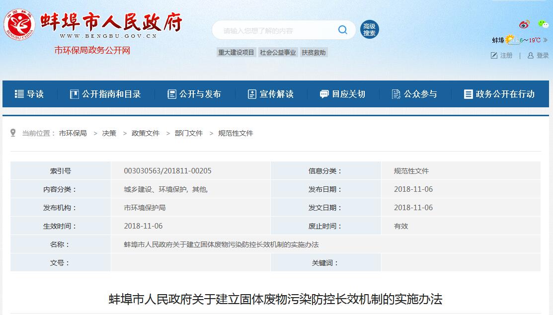 日前,蚌埠市發(fā)布了關于建立固體廢物污染防控長效機制的實施辦法,詳情如下:各縣(區(qū))人民政府,市政府各部門、各直屬機構、駐蚌有關單位:為貫徹落實《安徽省人民政府關于建立固體廢物污染防控長效機制的意見》(皖政〔2018〕51號)、《安徽省環(huán)境保護條例》、《安徽省實施〈中華人民共和國固體廢物污染環(huán)境防治法...