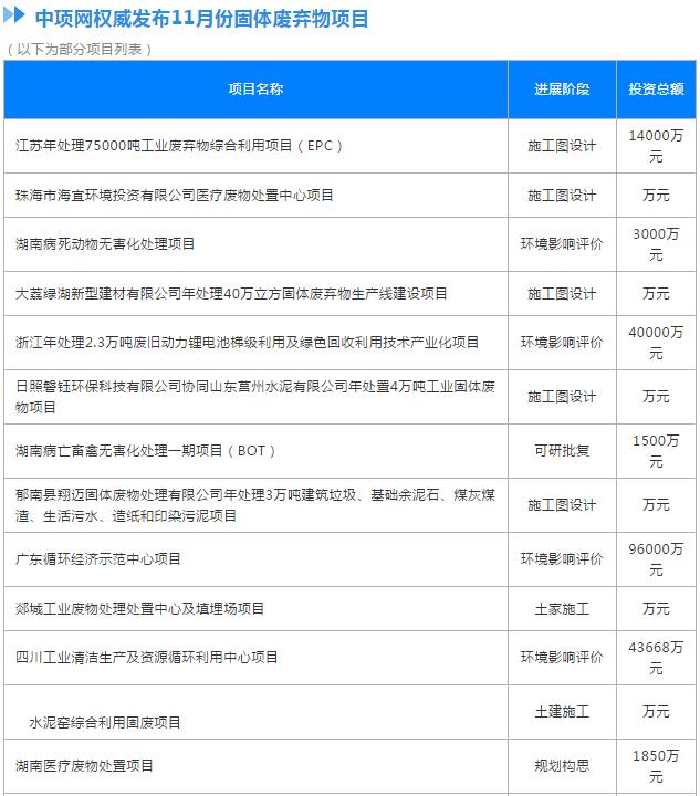 中項(xiàng)網(wǎng)獨(dú)家授權(quán)北極星固廢網(wǎng)發(fā)布最新垃圾處理項(xiàng)目(2018年11月20日更新),其中包括生活垃圾一體化PPP項(xiàng)目、垃圾填埋場(chǎng)項(xiàng)目、垃圾焚燒發(fā)電項(xiàng)目等。具體內(nèi)容如下: