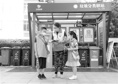 在北京市海淀區(qū)新科祥園社區(qū),社區(qū)工作人員(中)為“綠色明天”環(huán)保志愿小隊(duì)隊(duì)員李夢(mèng)鴻一(右)、施柏涵介紹垃圾分類知識(shí)。新華社記者 任超攝住建部、生態(tài)環(huán)境部等6部委近日聯(lián)合印發(fā)《綠色社區(qū)創(chuàng)建行動(dòng)方案》(以下簡(jiǎn)稱《方案》),要求綠色社區(qū)創(chuàng)建要與居民自治機(jī)制建設(shè)、社區(qū)服務(wù)體系建設(shè)有機(jī)結(jié)合起來(lái),營(yíng)造社區(qū)宜居環(huán)...